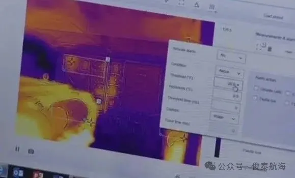 - 1. 全域覆盖,无感监测摄像机固定部署于机舱关键区域,利用其非接触式红外热成像技术,大范围、不间断地扫描监测电机、泵组、轴承、电气柜、排烟管路等关键设备的表面温度分布,生成直观的热像图。
