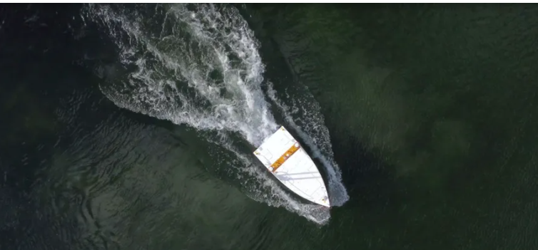 图:搭载Rim Drive电动无轴推进系统的无人船在石油平台附近工作