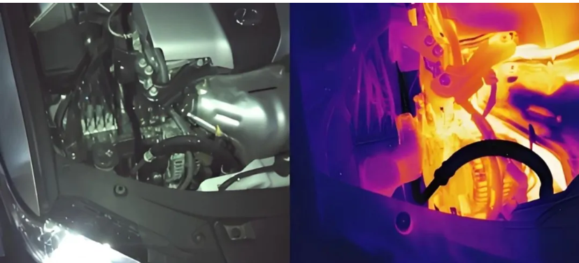 Lepton热像仪模组配备有双摄像头,包括标准配备的可将相机和热传感器,能够在可见光谱和红外线之间无缝切换,能够第一视角地看到周围环境的热显信号。