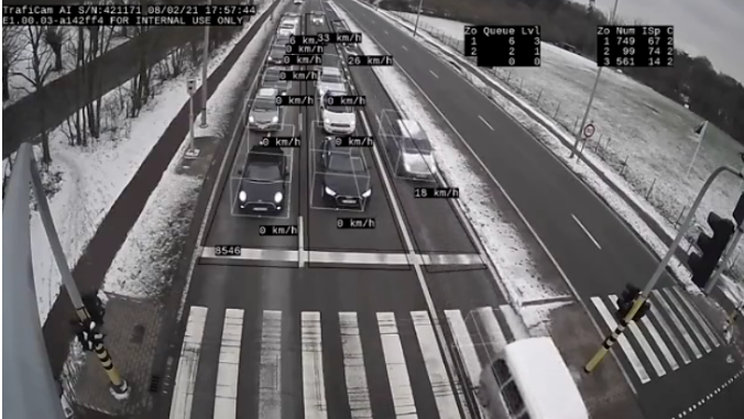 检测“闯绿灯“行为的难点在于排队长度及车辆速度的判断, 新型3D-AI多目标检测器将强大的边缘计算能力集成在传感器内部,通过可靠的3D-AI多目标检测算法,能够实时分析画面中每个车辆的位置和速度信息,通过这些信息,可以判断是否发生排队拥堵情况或者车辆停留现象。