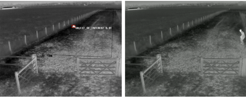 相同位置逆光条件,具备智能影像识别算法的系统,在复杂外界环境、树木、水波纹环境中都能有效过滤干扰,提前预警设备联动针对人员入侵、车辆入侵能够做到发现违法事态。