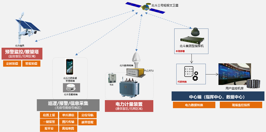 用电信息采集:在偏远或无公网覆盖区域,北斗三号数传终端通过短报文服务实现电表日电量数据、停复电事件等信息的实时回传,提升数据采集及时性。