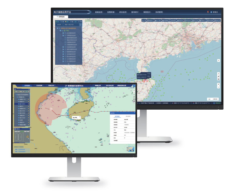 海上危废品综合信息管理服务平台通过与电子海图应用平台软件的双向数据互通,实现对终端的实时管控平台。