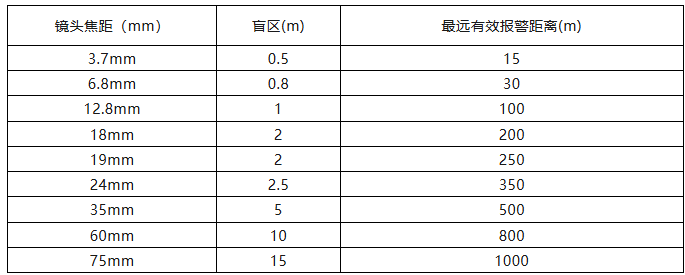 下表以设备安装离地面高度5m,安装俯角为8°,人(0.5m*1.8m)为目标属性为例,各型号的探测距离参数为: