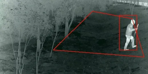热成像摄像机基于深度学习的规则,可在大范围内部署穿越警戒线、区域入侵、进入区域、离开区域共4种模式的入侵规则实时监测人、车,并且支持热成像联动可见光通道进行变倍拉近,对目标进行智能跟踪。
